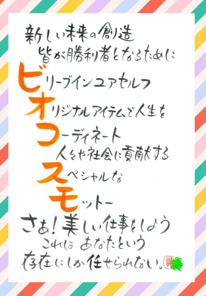 本来、人間の内奥に託された能力である発動力としての調和性や、能動性を開発し顕現させようとすることを視点として、それこそが己の使命であることを自覚せる人々と連帯する。